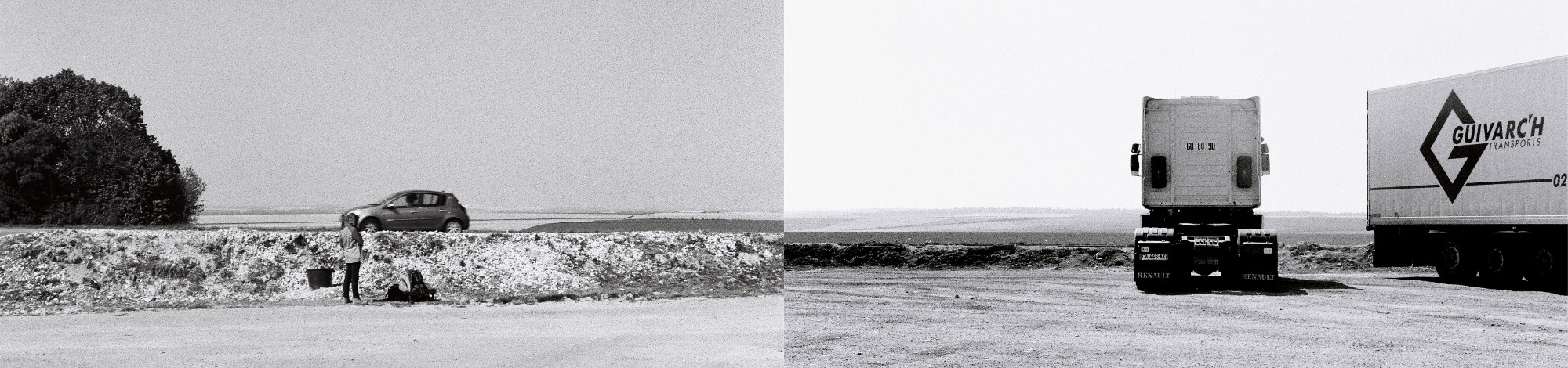Le parking de l'Anatolie est presque vide. J'en profite pour traîner un moment sur cette vaste étendue de graviers. Ici, la route n'est faite que de lignes horizontales et lointaines. Parfois, un petit panneau, une remorque ou un ami viennent me contredire.