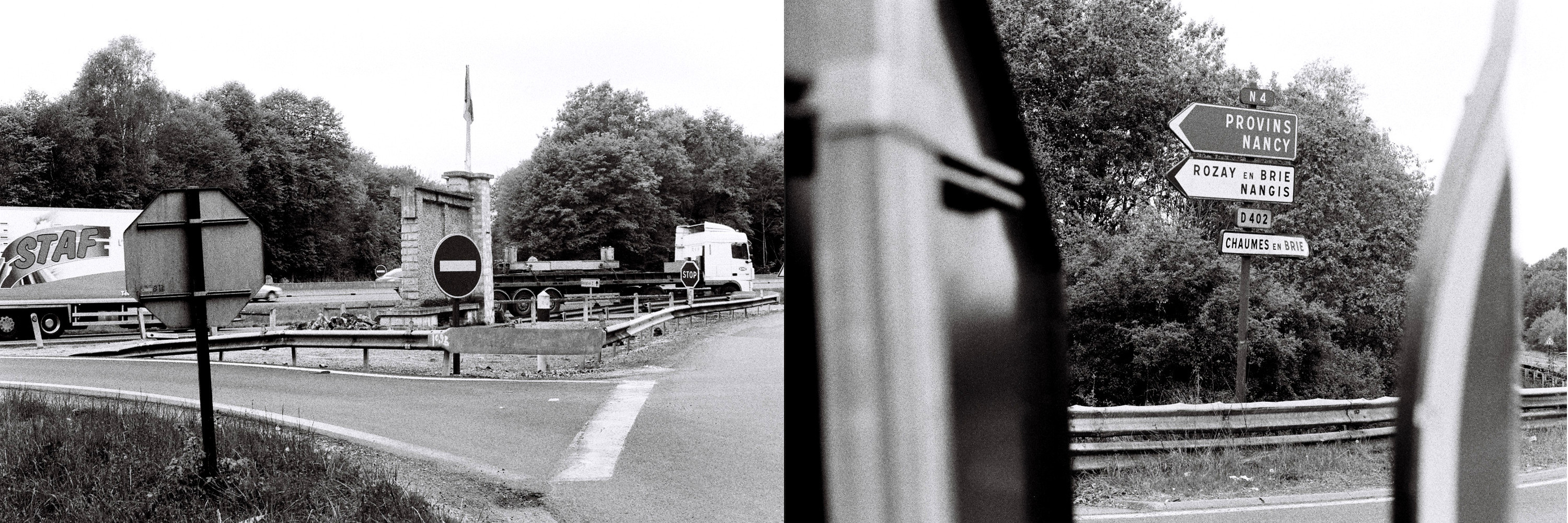 Déjà, il est temps pour lui de nous déposer une quinzaine de kilomètres plus loin, à la sortie de Fontenay. Notre nouveau point de départ est un petit carrefour boisé.